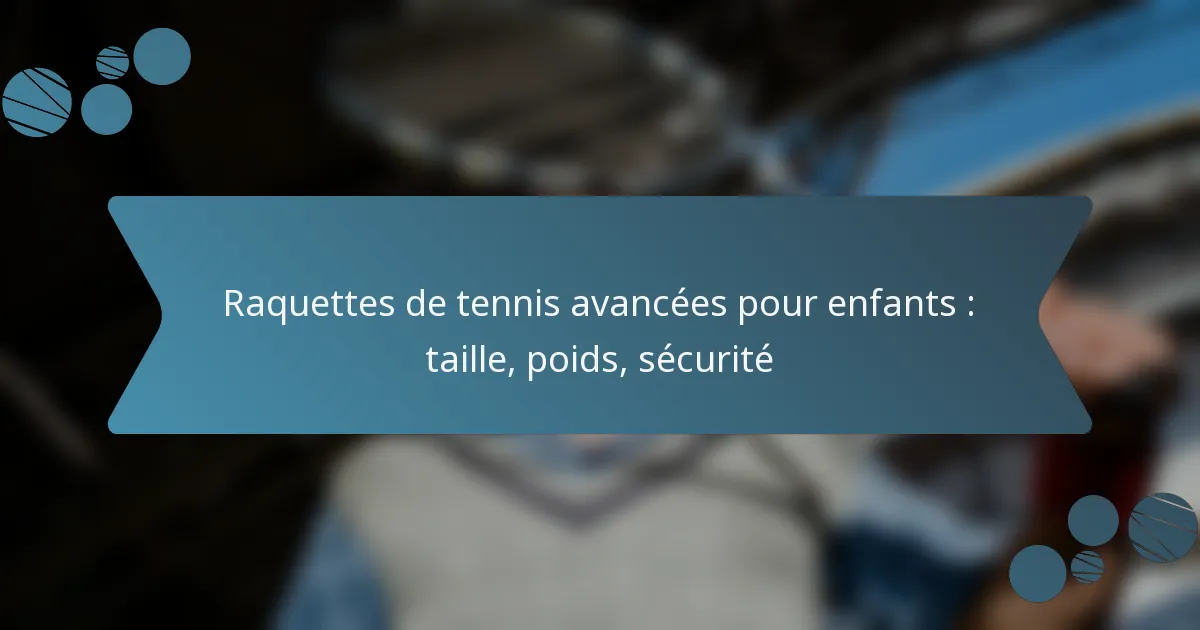 Les parents doivent prioriser les caractéristiques de sécurité lors de la sélection de raquettes de tennis avancées pour enfants. Les aspects clés incluent des matériaux qui réduisent le risque de blessure, des caractéristiques de design qui améliorent la sécurité et des directives pour une utilisation appropriée.