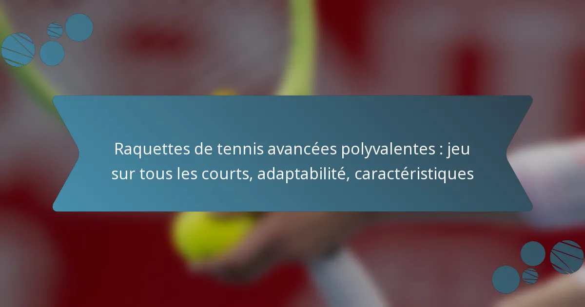 L’adaptabilité d’une raquette de tennis est influencée par plusieurs caractéristiques clés qui améliorent la performance à travers différents styles de jeu. Ces caractéristiques incluent le poids de la raquette, son équilibre et la tension des cordes, qui affectent collectivement la façon dont la raquette réagit à différents coups.